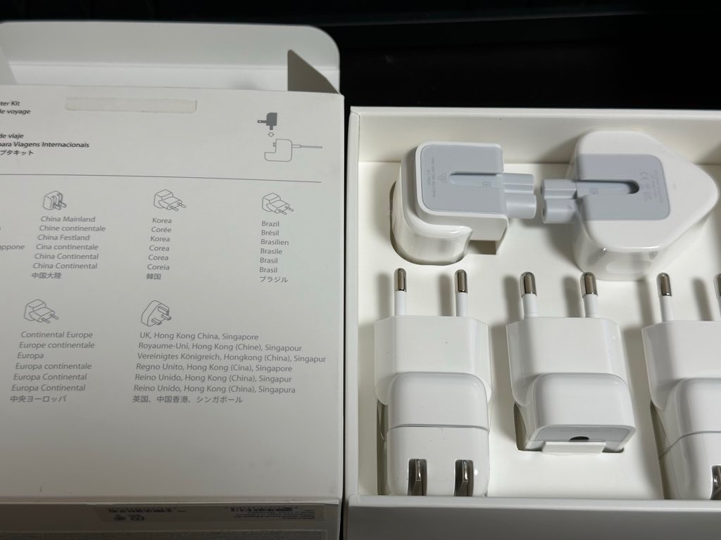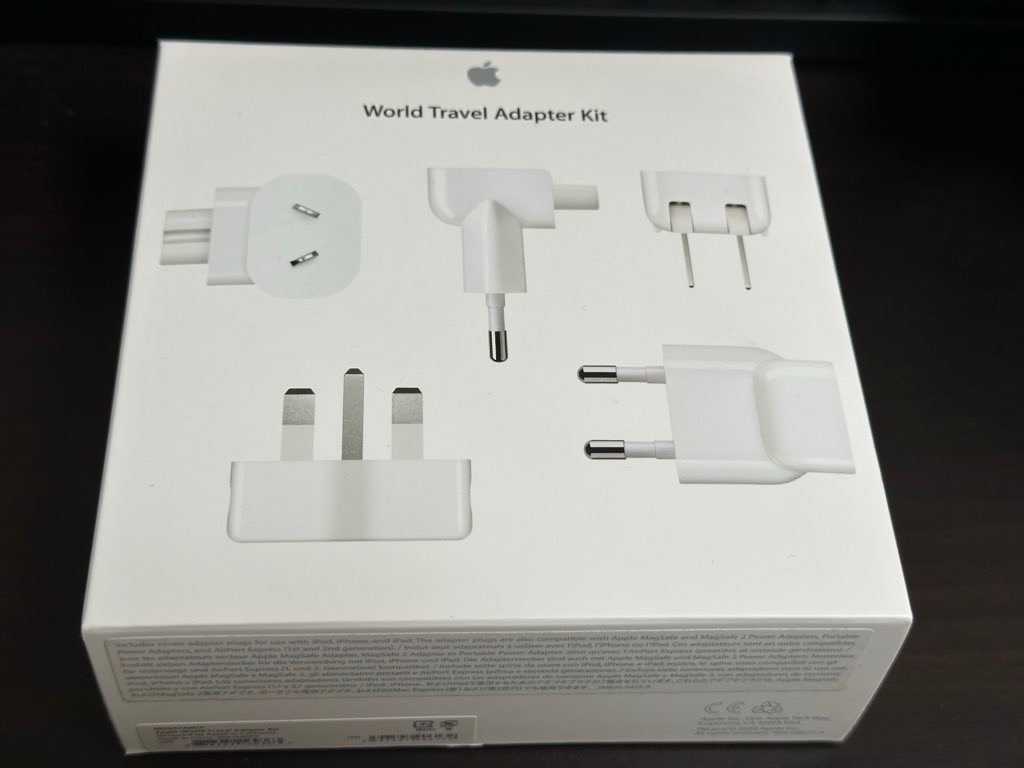 (今(2025年11月)確認したら、Appleワールドトラベルアダプタキットが終売になっていた。悲しい……)