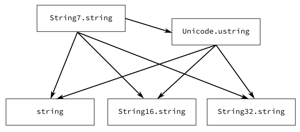 そういうわけで、ASCII文字列の型 String7.string も追加しようかと思っています。これはそんなに広く使うことを想定するわけではありませんが。