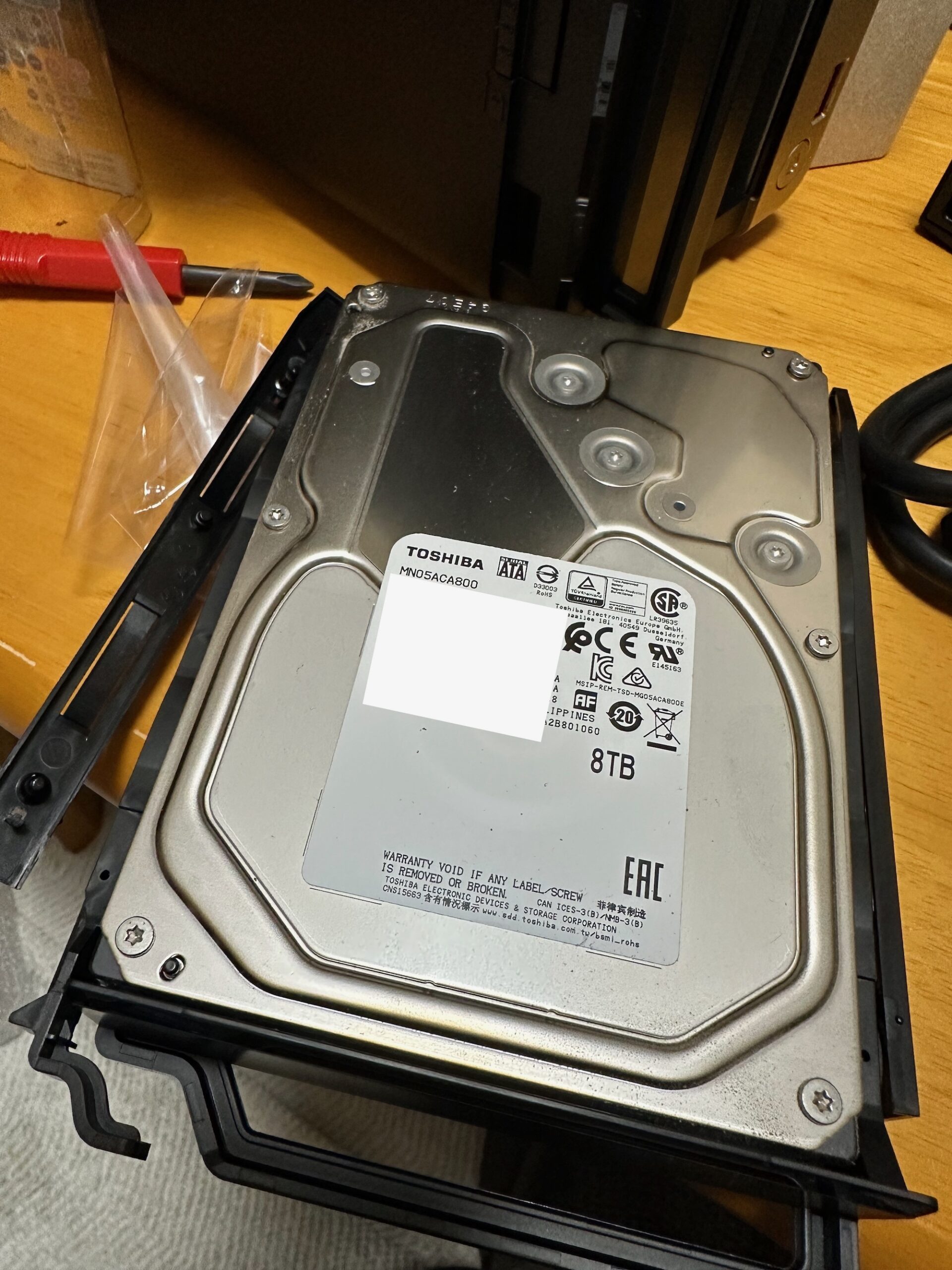 HDDは差し替えるとそのまま利用できるので良いのだが、ボリューム形式が「レガシーボリューム」のままで、最新のボリューム形式にはならない。データを保ったまま移行する方法もないようだ。真面目に移行するならもう一個HDDを用意して、となるのだろうか。