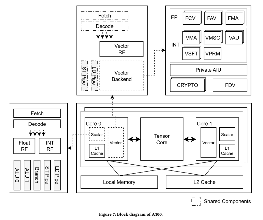 A100にはlocal memoryがあるらしい。資料によっては1.5MBのTCM (Tightly Coupled Memory)とも表記されているが、多分同じものだろう。A100の4コアからなるクラスターごとに1.5MB。プログラムからどう見えるのかはよくわからない。どこかのアドレス空間にマップされるのか。